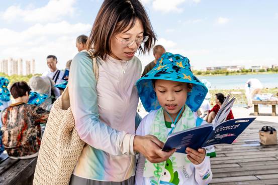 現場還向參與者發放了《東沙湖生態研學手冊》,該手冊由專家學者編寫,巧妙融合節氣文化、古詩詞生物知識及生態科普,深受孩子們喜愛。“我們希望通過手冊和活動,讓生態保護從口號變成行動,引導孩子們去關注身邊的一草一木。”園區巾幗環保組織負責人張巖說道。