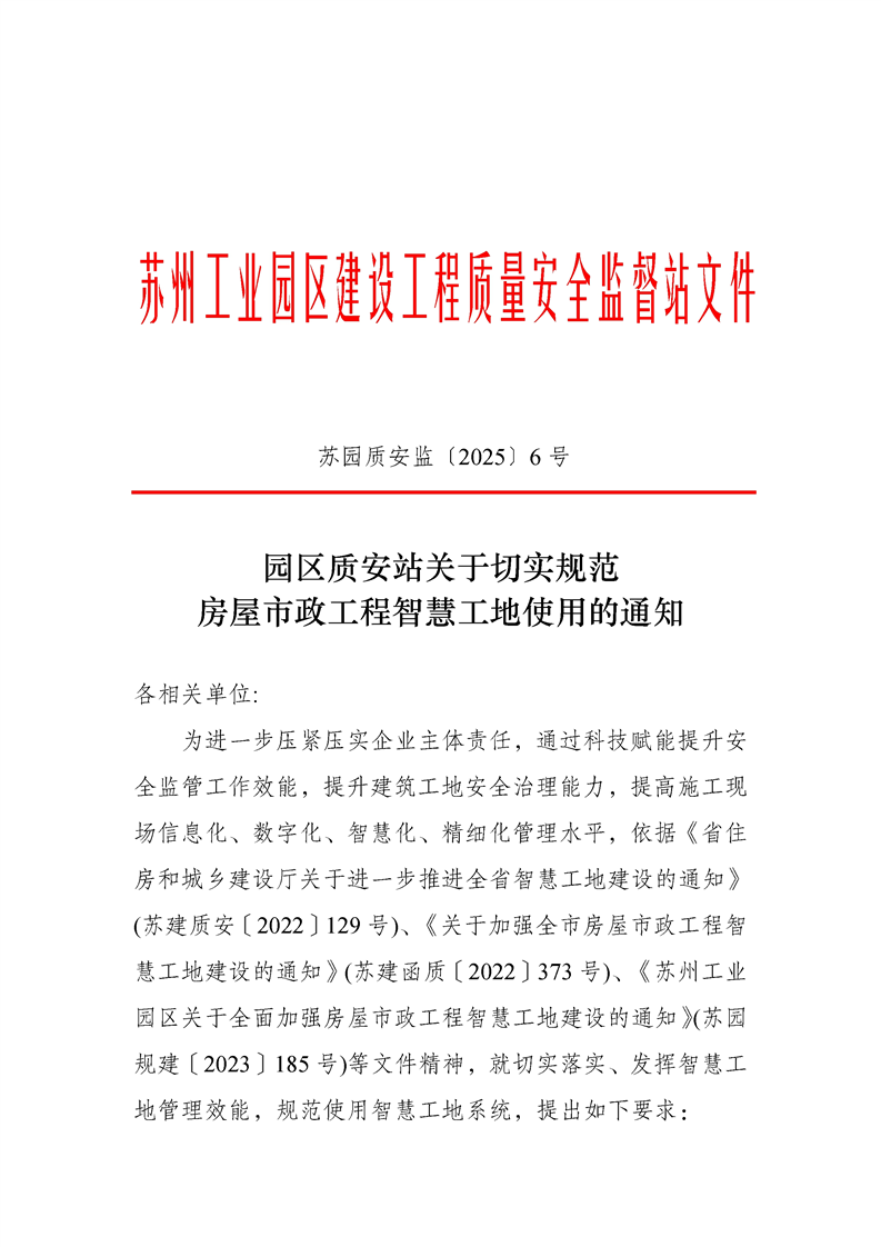 園區(qū)質(zhì)安站關(guān)于切實(shí)規(guī)范房屋市政工程智慧工地使用的通知