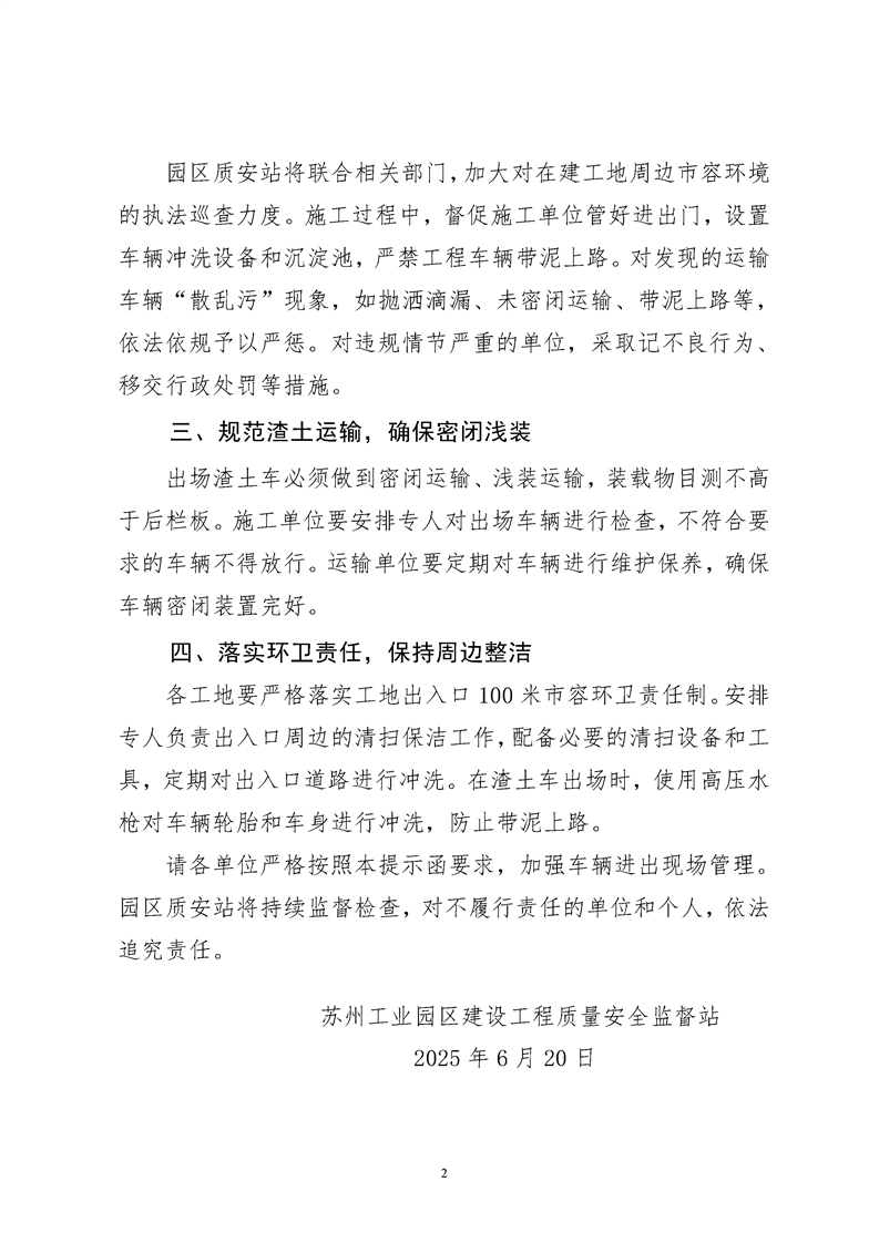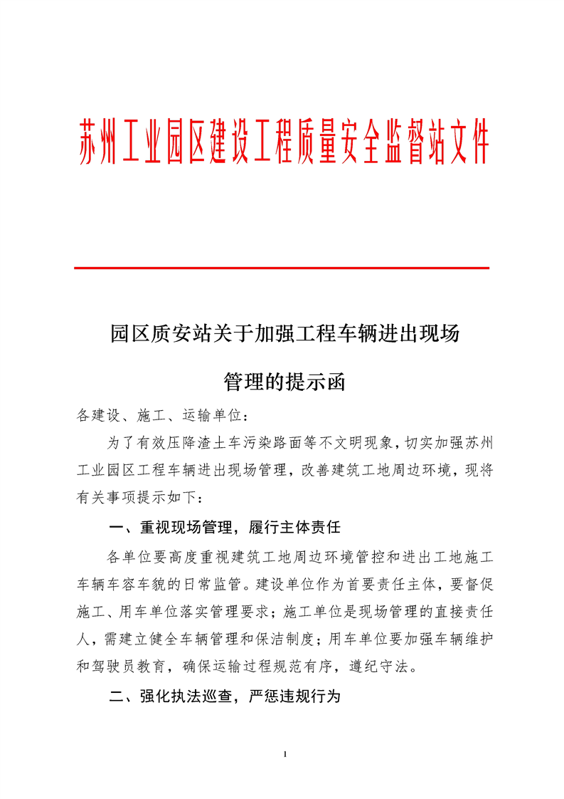 園區(qū)質(zhì)安站關(guān)于加強(qiáng)工程車輛進(jìn)出現(xiàn)場(chǎng)管理的提示函