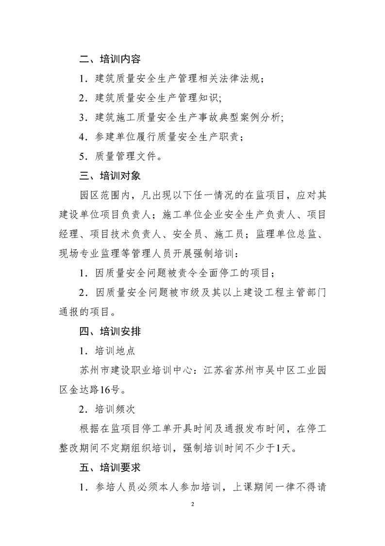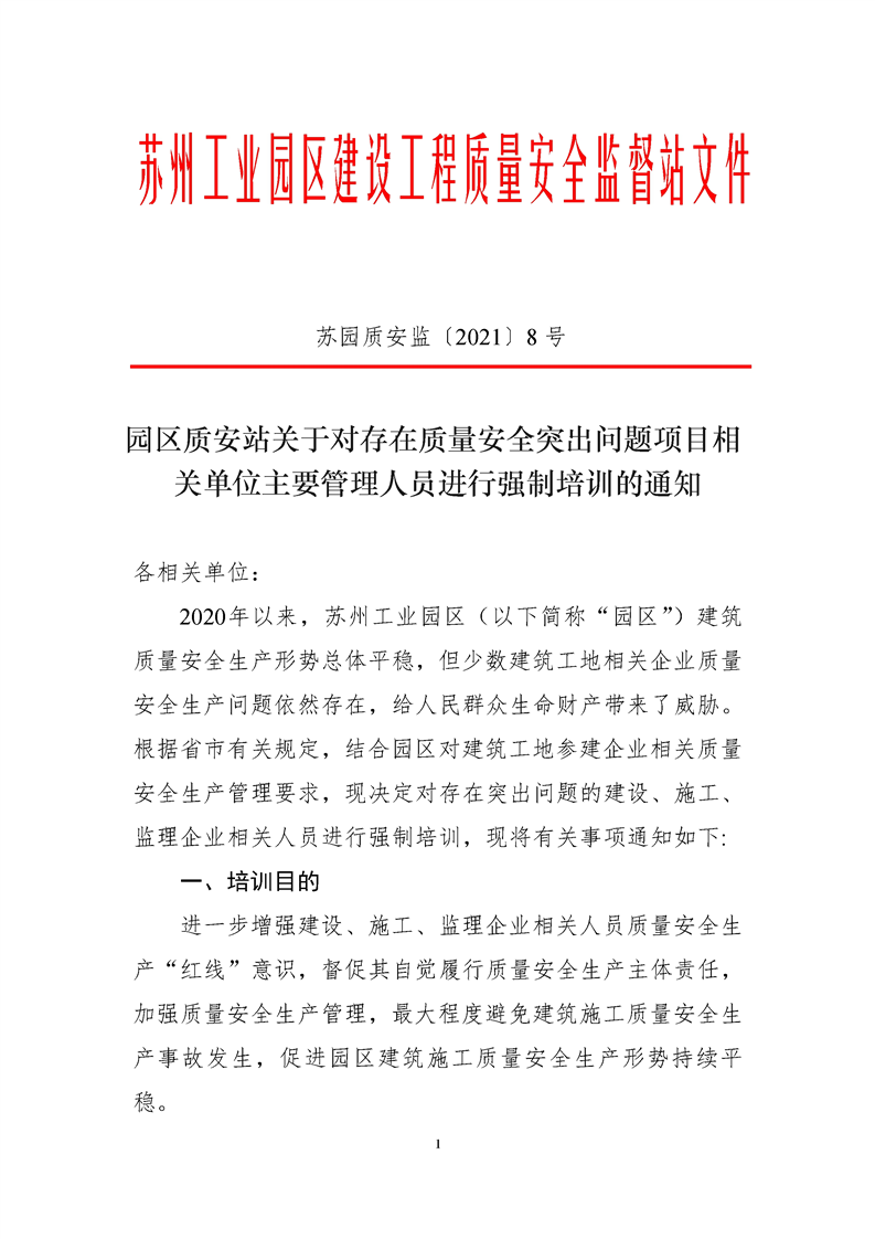 園區(qū)質(zhì)安站關于對存在質(zhì)量安全突出問題項目相關單位主要管理人員進行強制培訓的通知
