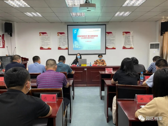 園區檔案管理中心的王雁老師為大家梳理了檔案工作的基礎業務知識,介紹了企業檔案管理工作的主要內容,重點講解了檔案的收集、整理工作的具體環節,強調了歸檔文件材料質量要求。