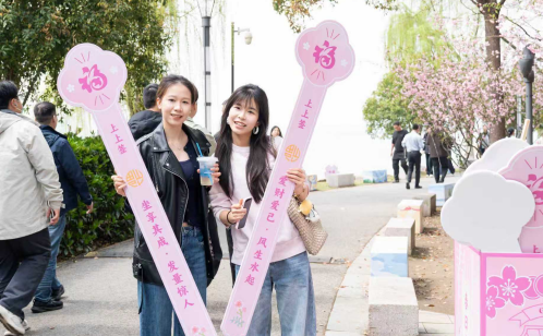 依托湖畔百花爭春的盛景,現(xiàn)場打造世尊步道、春日花墻、創(chuàng)意夸夸鏡三大主題打卡點(diǎn),步道落英繽紛、花墻氛圍感拉滿、夸夸鏡傳遞溫暖治愈,成為市民拍照打卡的熱門點(diǎn)位,隨手一拍便是春日大片,朋友圈刷屏不斷。