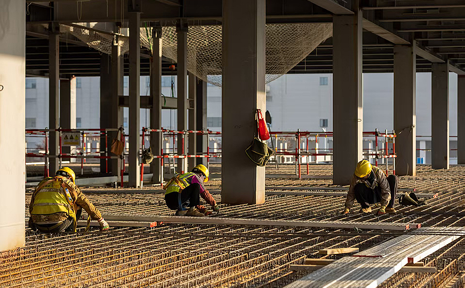 沿著深達十余米的基坑向下望去,工人們正緊張地進行鋼筋綁扎、模板安裝等工作。恒泰城發工程開發部副總監宋劍波指著施工現場介紹:“今年,蘇州東站樞紐項目七大地塊將全面開工。作為項目核心且面積最大的A、B地塊,目前正有序完成負三層頂板施工,計劃在5月底完成A、B區一批次基坑地下結構出正負零,這也將是項目建設重要的里程碑。4月底,我們還將同步推進二批次基坑的開挖工作。”