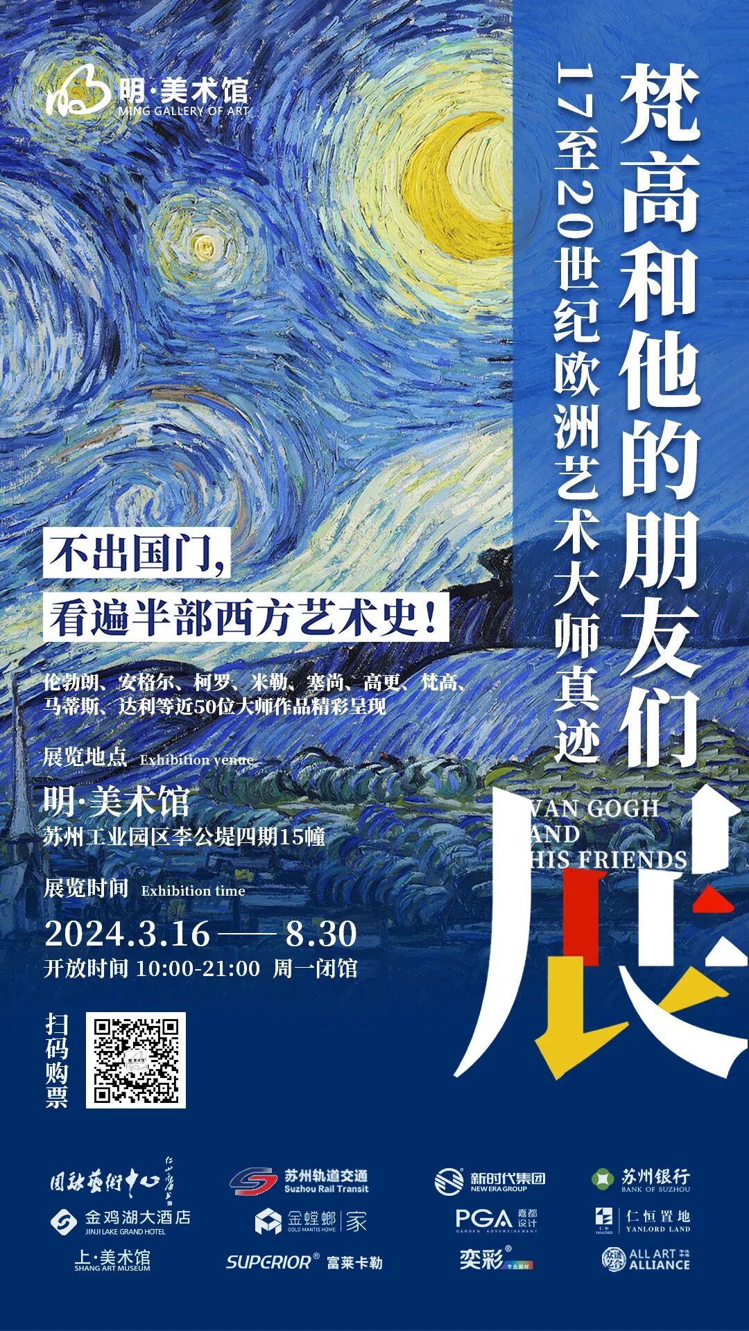 明·美術(shù)館的“梵高和他的朋友們”17至20世紀歐洲藝術(shù)大師真跡展,精選包括倫勃朗、米勒、高更、梵高、馬蒂斯、達利等50余位歐洲藝術(shù)大師的經(jīng)典作品,讓觀眾不出國門,一站看遍半部西方藝術(shù)史。
