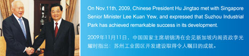 2009年11月11日、中國?胡錦濤國家主席がシンガポール?リークァンユ上級相と會見した際に、蘇州工業(yè)園區(qū)の開発?建設は注目すべきの成績を収めたと述べた。