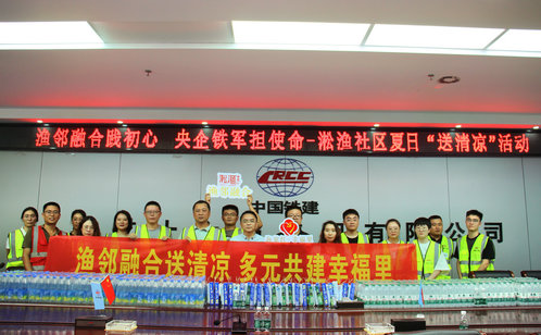 中國鐵建的前身是中國人民解放軍鐵道兵,在中國人民革命解放戰爭、抗美援朝戰爭和新中國社會主義建設中,他們為中華民族的解放事業和建設事業做出了不朽的貢獻。今天,新一代鐵建員工,秉承鐵道兵“逢山鑿路,遇水架橋”精神,為國家的繁榮富強和人民的幸福生活筑夢。淞漁社區為蘇州地鐵八號線建設者送上了花露水、香皂、鹽汽水等清涼物資,還送上了寫著“漁鄰融合踐初心,央企鐵軍擔使命”的錦旗表達敬意。“鐵道兵精神的核心內涵是艱苦奮斗、志在四方,我們將把這份關懷轉化為工作動力,繼續為項目順利推進貢獻力量。”中鐵十六局集團有限公司蘇州VIII-TS-14-2標項目經理部黨支部書記禹鵬飛說道。