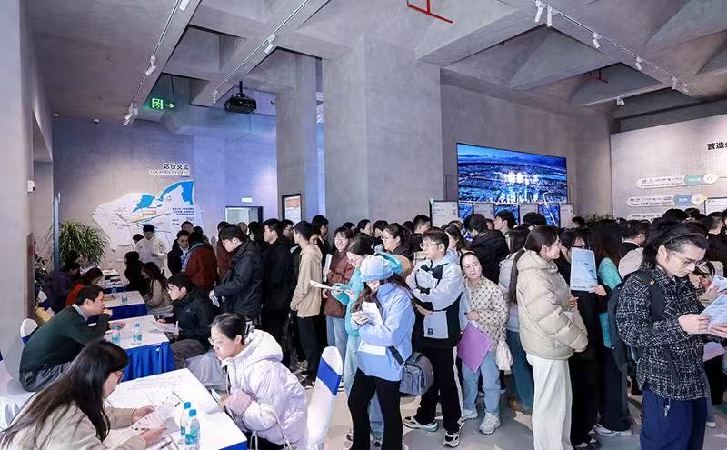招聘會(huì)現(xiàn)場(chǎng)人頭攢動(dòng),熱鬧非凡,不少企業(yè)攤位前都排起了長(zhǎng)隊(duì)。來(lái)自山東煙臺(tái)大學(xué)通信工程專業(yè)的應(yīng)屆畢業(yè)生岳國(guó)震,拖著行李就直奔現(xiàn)場(chǎng)。他興奮地說(shuō):“我在社交媒體上看到招聘會(huì)信息,就想來(lái)碰碰運(yùn)氣。我姐姐也在園區(qū)工作,一直跟我講這里充滿活力,市場(chǎng)潛力大,對(duì)青年人才的政策保障也特別給力,就業(yè)前景廣闊。”