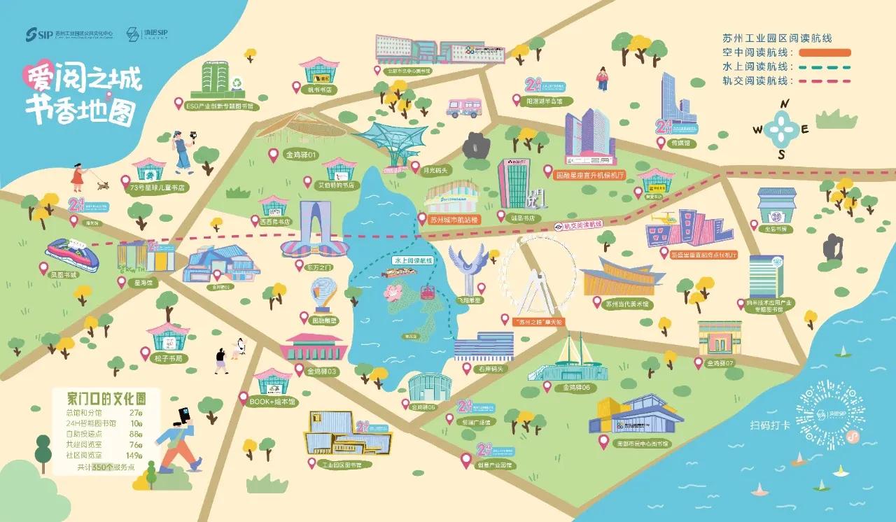 空中閱讀航線將在蘇州城市航站樓、圓融星座直升機候機廳、新盛里垂直起降點候機廳為旅客提供數字閱讀服務;水上閱讀航線將閱讀觸角延伸至“金雞湖號”雙體新游船、桃花島游客中心,為游客提供“園區文旅”掃碼聽、休閑讀物隨手閱的文旅閱讀服務;軌交閱讀航線則重點圍繞軌交1號線,串聯沿線品牌書店、24小時圖書館、高客流量站點及文商旅機構的優質閱讀資源。