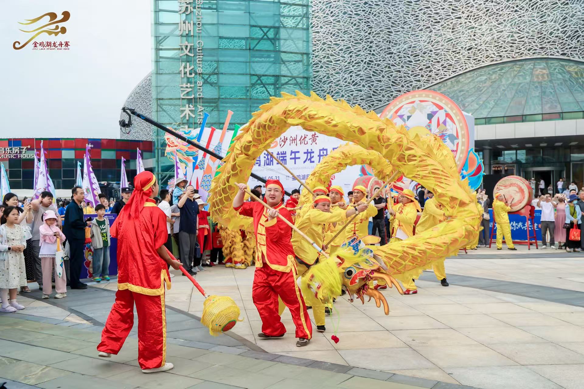 5月31日,2025沙洲優(yōu)黃第十五屆金雞湖端午龍舟賽在月光碼頭鳴鑼開賽。
