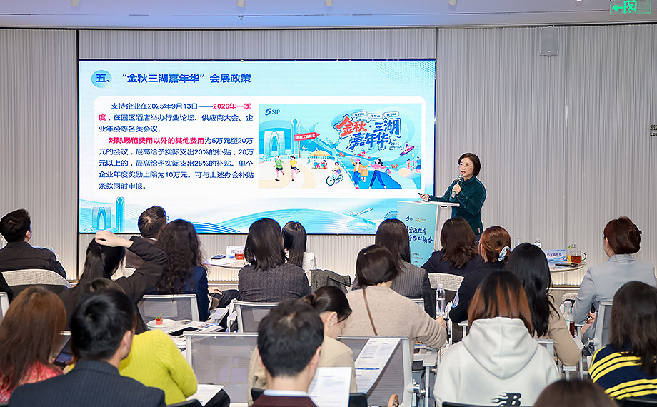 會上,園區(qū)商務(wù)局服貿(mào)處詳細介紹了園區(qū)辦會辦展專項政策,以及各類規(guī)模會議補貼內(nèi)容。作為“金秋?三湖嘉年華”系列讓利舉措之一,園區(qū)首次出臺企業(yè)在酒店辦展辦會的補貼政策,以真金白銀惠企利民。自2025年9月13日起至2026年一季度,企業(yè)在園區(qū)酒店舉辦各類會議會展活動,除場租費用外的其他費用可享受20-25%補貼,最高10萬。