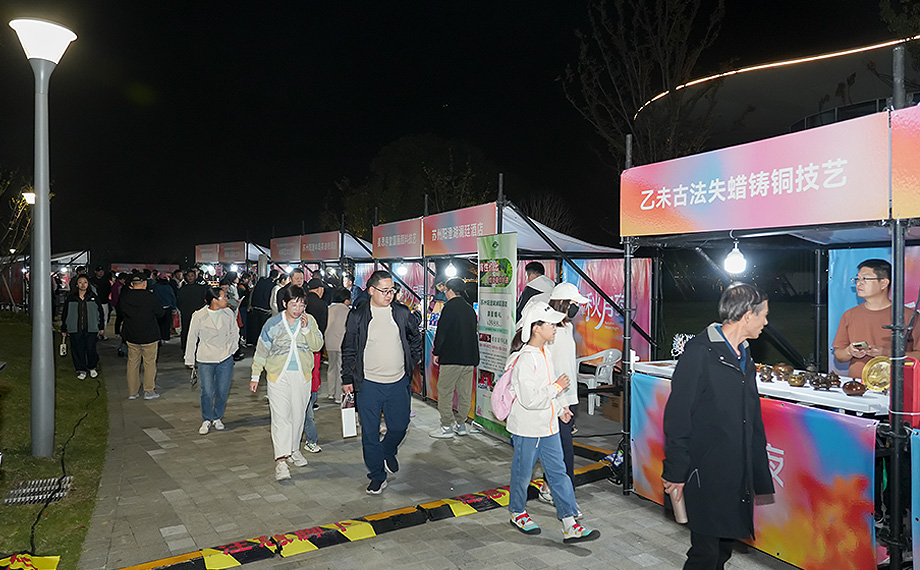 舞臺一側,“右岸秋月夜”限定特色市集同樣人氣火爆。20余個展位匯聚生活美學、潮流科技、市集好物,形成互動體驗的一大亮點。