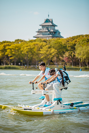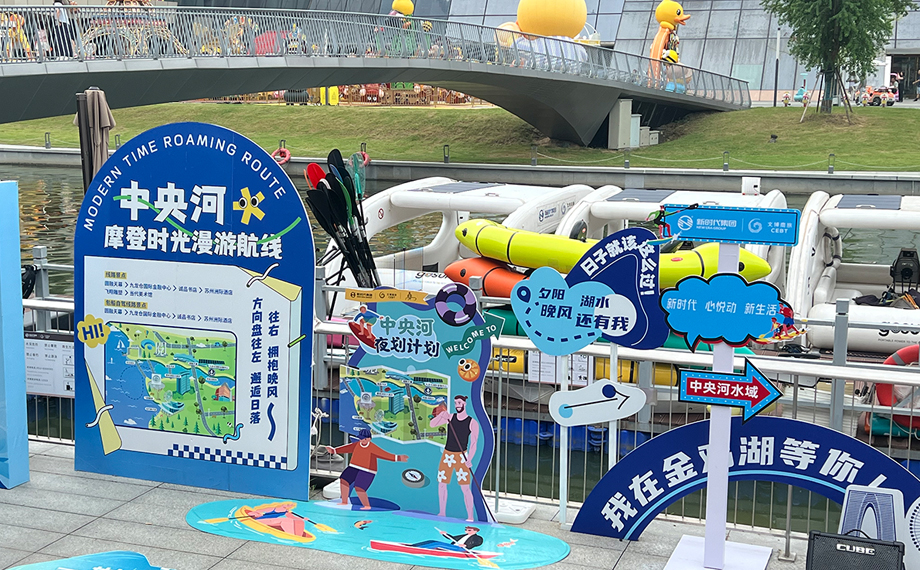 水幕光影展現科技的浪漫、槳板小船蕩起親水的快樂、環湖騎行追逐破風的自由……這個國慶中秋,蘇州工業園區以萌趣潮玩為鑰,為您打開金秋?三湖嘉年華的奇幻之門。