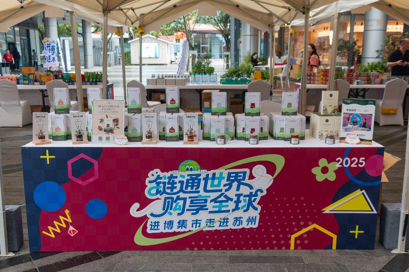與此同時,園區(qū)各類主題市集遍地開花。在688藝術(shù)潮流空間,“公園好市秋日集”微醺市集攤位飄來酒香,美食攤位香氣誘人,各類好物目不暇接,以輕松愉悅的氛圍成為都市人放松身心的理想去處;比斯特蘇州購物村推出“交個螃友”湖畔大閘蟹美食市集,各個創(chuàng)意蟹料理攤位以時令美食撬動消費,更聯(lián)合非遺傳承人打造“蟹意翻花扇”,蘇州博物館“蟹黃黃”系列萌趣文創(chuàng)也同步亮相,通過義賣支持比斯特“DoGood”公益項目;蘇州中心鳳園“花花市界”文創(chuàng)市集人氣十足,白綠色調(diào)的攤位在陽光下格外清新,25個特色攤位涵蓋文創(chuàng)、美食、創(chuàng)意快閃等多樣品類,傍晚時分的DJ打碟表演和現(xiàn)場音樂會更是將氣氛推向高潮;圓融天幕街“鏈通世界,購享全球”進博集市則帶來了中國國際進口博覽會的“明星展品”與獨特的世界文化體驗,匯聚數(shù)十個國家和地區(qū)的特色商品,讓蘇州消費者零時差、零距離輕松購遍全球好物。
