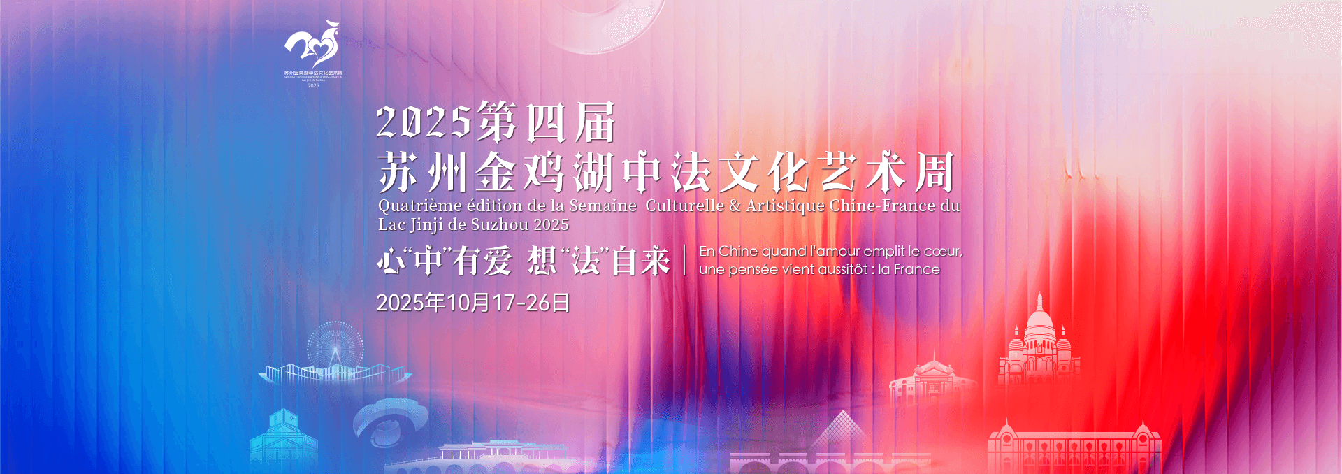 10月17日,2025第四屆蘇州金雞湖中法文化藝術周在李公堤盛大啟幕。作為“金秋·三湖嘉年華”中“一生一世金雞湖”主題的重磅活動,本屆藝術周接棒前三屆的“友誼基因”,端上展覽、電影、文學、美食、演出等滿滿當當的中法“文化大禮包”,為金秋蘇州注入濃郁法蘭西風情,更向世界展現中國文化的獨特魅力。