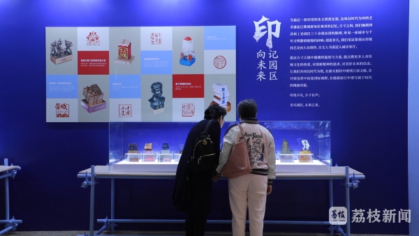 展覽分為“印記園區”與“印向未來”兩大板塊。第一部分“印記園區”以94件全新創作的印章,構建“領航擘畫”“志合山海”“吳風湖韻”“勇立潮頭”“盛世江南”五大篇章,展現蘇州工業園區在經濟、科技、文化、生態等方面的成就。第二部分“印向未來”則從“印記中國”“印記北京中軸線”“印見榮光”等系列展覽中精選86件作品,勾勒國家發展與時代變遷的軌跡。