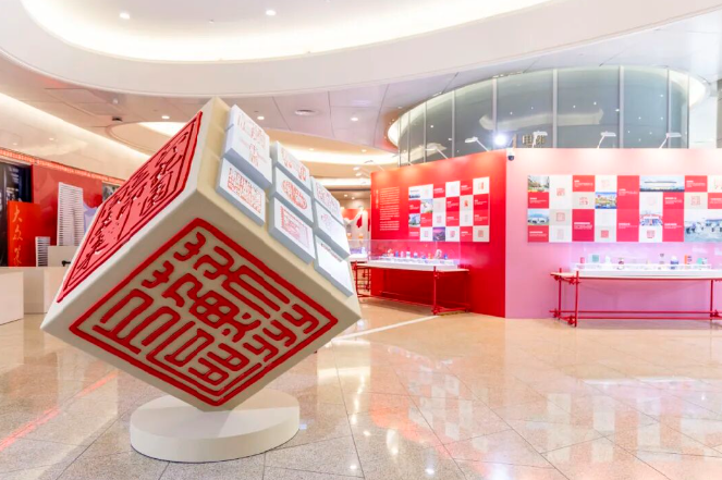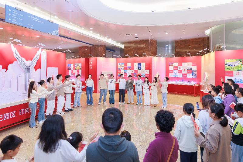 直播鏡頭跟隨導覽人的腳步,深入解讀了展覽的兩大構成部分。第一部分“印記園區”以94枚全新創作的印章,構建出“領航壁畫”“志合山海”“吳風湖韻”“勇立潮頭”“盛世江南”五大篇章。這些作品不僅凝結了園區篆刻愛好者與專業工作者的創意巧思,更特別聚焦于園區的經濟發展、科技創新、自然景觀與產城融合圖景進行創作,讓古老的篆刻藝術與園區的現代化發展深度交融。