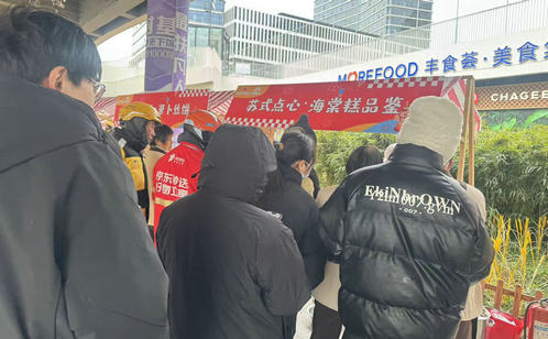 市集現(xiàn)場暖意氤氳,一碗碗熱氣騰騰的紅豆小圓子,承載著社區(qū)對新業(yè)態(tài)群體最真摯的牽掛與關(guān)懷。外賣騎手、快遞小哥等奔波在一線的新業(yè)態(tài)從業(yè)者,在忙碌間隙接過這份暖心甜品,卸下一身疲憊,真切感受著社區(qū)大家庭的溫情與暖意。海棠糕的香甜軟糯、蘿卜絲餅的鮮香酥脆,一道道蘇州地道傳統(tǒng)美食整齊陳列,社區(qū)工作人員與紅色志愿者有條不紊地分發(fā),讓居民在味蕾的享受中重拾兒時年味,也讓新業(yè)態(tài)群體在濃郁的煙火氣息中快速融入社區(qū)、找到歸屬。這場以冬日美食為紐帶的溫情行動,搭建起社區(qū)與居民群眾、新業(yè)態(tài)群體之間的溝通橋梁,以“小關(guān)懷”凝聚“大合力”,繪就出鄰里相融、共建共享的基層治理同心圓。