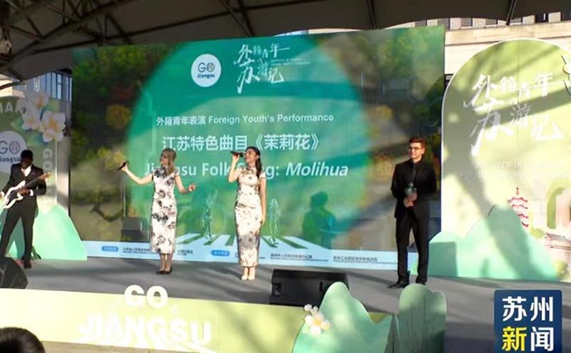 現場,外籍青年們熱情分享“我與江蘇那些事兒”,深情表白對江蘇的熱愛和期待。部分外籍青年代表表演了江蘇特色曲目《茉莉花》,并獲贈紀念品。