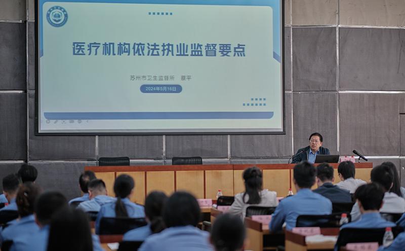 為進一步落實國家、省、市及園區關于提升行政執法質量三年行動的相關要求,蘇州工業園區衛健委5月份舉辦2024年衛生健康綜合監督人員能力提升培訓班,旨在全面提高園區衛生行政執法人員能力素質,持續提升行政執法質量效能,推動園區衛生健康綜合監督工作再上新臺階。園區衛健委、衛生監督所及分所、醫管中心等單位50余人參加培訓。