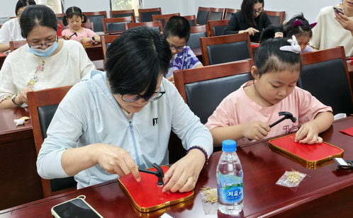 葑南路社區開展紅色釘子畫手工制作活動,以釘子畫為載體,以青少年喜聞樂見的方式傳承紅色文化,感悟紅色精神,堅定理想信念。金益社區“紅管”志愿者為孩子們講述新中國的輝煌歷史成就,帶領他們親自動手制作非遺金箔畫,寓教于樂,讓愛國的種子在幼小的心靈生根發芽。