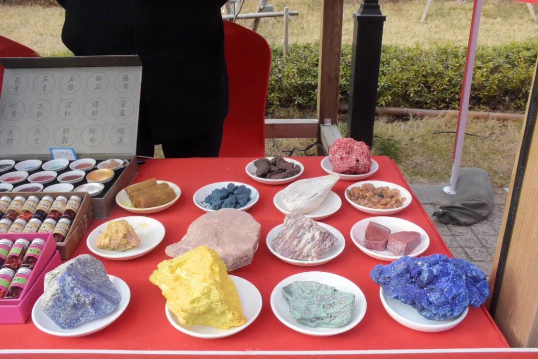 “這是藍銅礦,《千里江山圖》的青綠就是源自這種礦石。這是青金石、朱砂、瑪瑙、貝殼、藤黃、珊瑚、胭脂蟲……有些是礦物原料,有些是動物原料,蓼藍草等則是植物原料。”在“非遺賀新春——古城過大年”全國主會場活動暨蘇州古城過大年系列活動的展示現場,姜思序堂國畫顏料制作技藝非遺代表性傳承人張佰林正熱情地向圍觀的市民游客介紹著各色顏料的原材料。