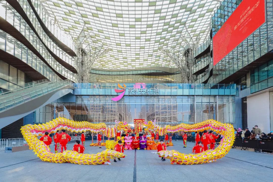 大年初一“金龍醒獅賀新歲”,蘇州中心商場攜夏國璋龍獅團帶來新年一場開門迎福活動。現場,激昂的鑼鼓聲震耳欲聾,一條金色巨龍蜿蜒盤旋,氣勢恢宏,展現出無盡的活力。