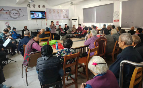 在蓮香社區的日間照料中心,經典劇目《梁祝》《牡丹亭》等輪番上演,雖然沒有精致的服裝和妝造,但“民星”們精湛的表演和悠揚的唱腔還是贏得了居民們的陣陣掌聲。完全由社區居民自發成立的蓮聲戲曲社,在新的一年中隊伍更加壯大,目前固定社員已有12人,每個人在吹、拉、彈、唱上都有自己的專長。每周二下午的日照中心活動室里總是人頭攢動,社區的戲迷們更是早早地來到了活動室,就為了搶到靠前的位置。“現在每周二,我雷打不動地過來聽戲,在家門口看大家的表演,真是過足了戲癮!”社區居民李奶奶興奮地說道。社區常態化開展豐富多彩的文化活動,不僅讓居民感受到了文化的魅力,也進一步拉近了鄰里之間的距離,讓居民“家門口”的文化大餐觸手可及。