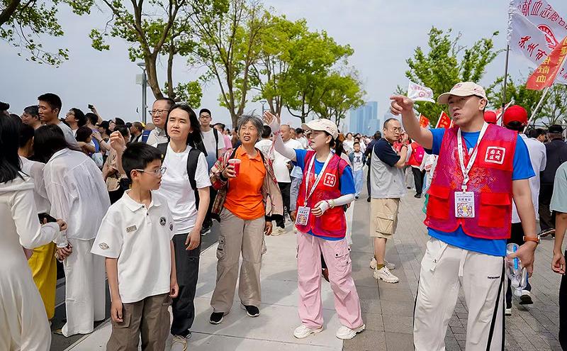 “體驗區請往這邊走!”在非遺科技龍舟體驗區,網格長楊章繹正熱情地為游客指引方向。“前期我們進行了踩點、人員安排等,今天我六點半就到現場待命了。這次我主要負責非遺科技體驗區游客問詢、觀賽引導及秩序維護等工作。”楊章繹是來自園區企業江南嘉捷的員工,也是一名資深志愿者。自金雞湖端午龍舟賽首次招募志愿者開始,他就一直報名參與賽事的志愿服務工作。“能夠持續為園區大型賽事貢獻自己的力量,我覺得很快樂也很自豪。我們要通過完善的服務,展現蘇州和園區的城市溫度。”