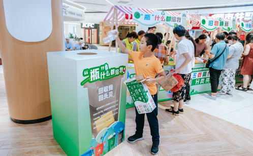 趣味游戲區的創意設計亮點頻出。居民們手持打卡地圖,穿梭于“垃分視力表”“分類大轉盤”“綠色補給站”等八大互動點位,通過趣味測試、知識問答、投擲游戲等方式邊玩邊學。“‘瓶’什么都給我”專區人氣爆棚,居民王阿姨用積攢的飲料瓶兌換了綠蘿,笑得合不攏嘴?!俺峭对偕薄熬G色補給站”和“舊物煥新”專區也深受居民青睞,居民們拎著紙箱、舊衣物排隊兌換環保袋、文具等實用物品,直觀感受到“垃圾是放錯位置的資源”。游戲化體驗不僅提升了垃圾分類知識的趣味性和互動性,更讓居民在輕松愉悅的氛圍中掌握分類技巧、提升環保意識。針對還不太熟悉如何正確分類的居民,志愿者則一對一講解垃圾分類知識,實現寓教于樂“零距離”。此外,志愿者們還同步宣傳倡導“光盤行動”“限塑”“減少使用一次性用品”等源頭減量、簡約適度的生活方式。
