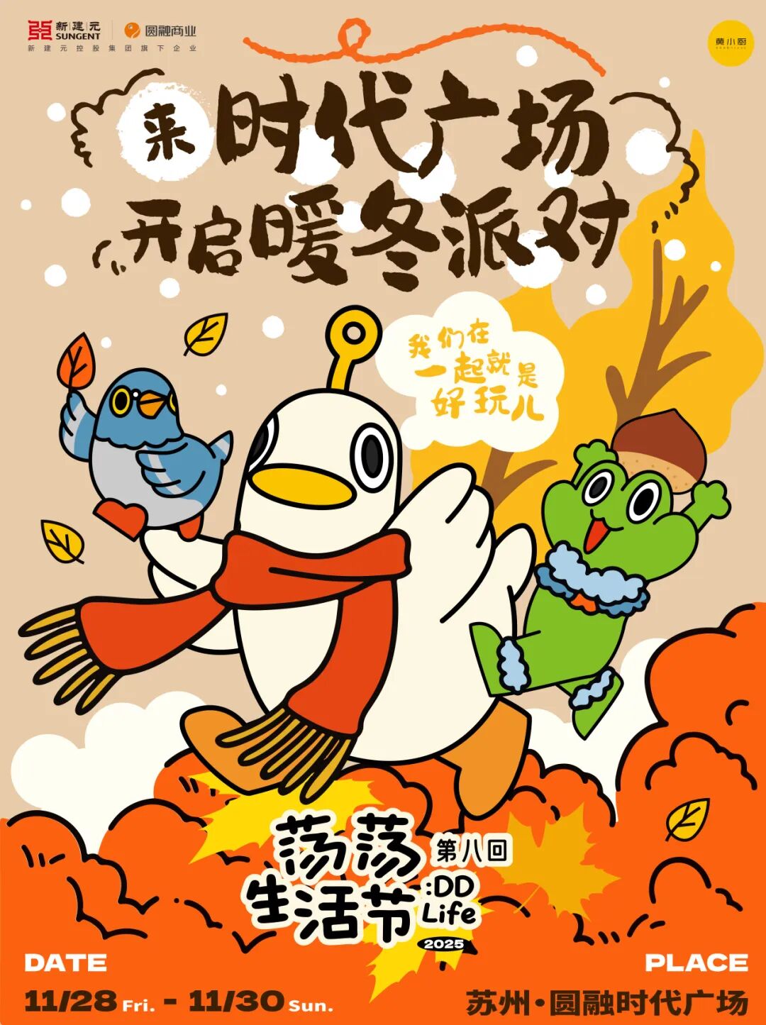 賽事期間,園區多元文旅場景各展亮點,滿足不同群體的體驗需求。11月28日至30日,時代廣場天幕西街將上演“蕩蕩生活節第八回”,30+美食文創商戶集結成暖冬市集,治愈系美陳打卡點與每日主題Chill音樂現場交織,無論是獨自出行、好友結伴還是家庭出游,都能找到專屬社交樂趣。11月30日,蘇州文化藝術中心“人生海海—XUAN了室內合唱團音樂會”溫情開唱,從甜蜜情歌到熱血金曲,用歌聲傳遞普通人的追夢力量。