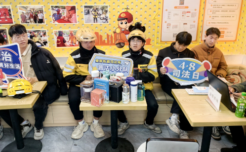 針對不同群體的差異化需求,各社區還推出了精準服務。夏家橋社區在萬科美好廣場暖“新”驛站開展司法日主題活動,工作人員現場發放法律宣傳手冊及宣傳品,圍繞勞動權益保障、交通安全等內容進行重點講解,為快遞員、外賣配送員等奔波在路上的“城市擺渡人”送上貼心法治關懷;而在團結社區的日間照料點內,工作人員則面向老年居民普及老年人權益保障、防范養老詐騙等法律知識,深入淺出地解讀相關法律法規,切實滿足老年群體學法用法需求,有效提升老年人風險防范意識。