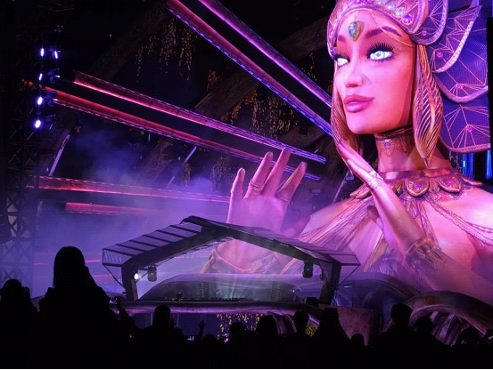 The kineticFIELD, the main stage designed by a world-class team, became an instant sensation on Internet. The Goddess Gaia, a towering statue, swayed her mechanically articulated arms to the beat, synchronized with lasers, flame and fireworks.