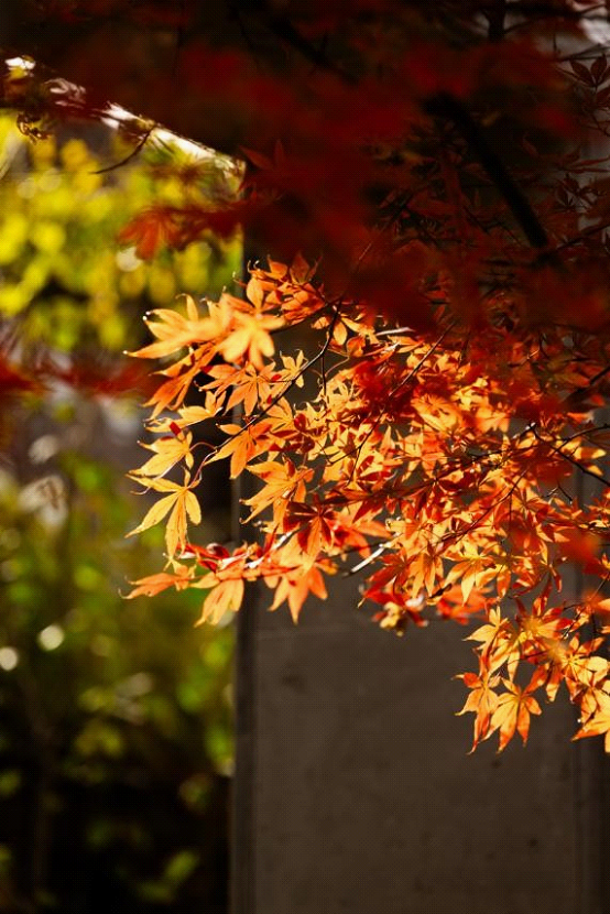 form a radiant screen, while fallen foliage and sleek architectural lines