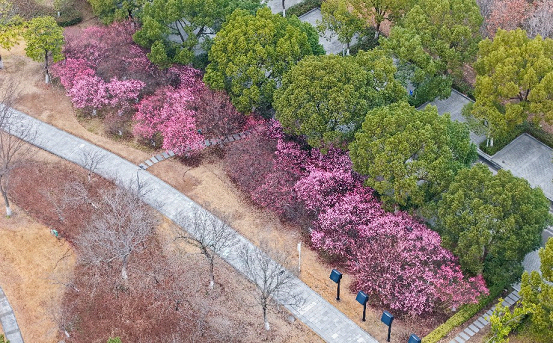 Parks like Baitang Arboretum and Dongsha Lake Park have become popular destinations, where visitors can immerse themselves in the clouds of pink flowers and lingering fragrance. The delicate yellow wintersweet flowers add vitality to the chilly air with its refreshing scent.