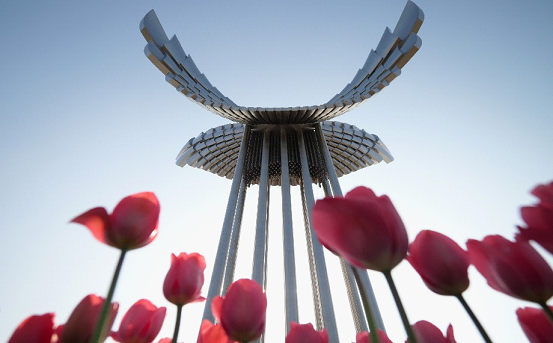 Beneath the “Flying” sculpture by Jinji Lake, a splendid sea of tulips has become a vibrant splash of color in SIP’s spring scenery. Tulips of various colors stand tall and graceful.