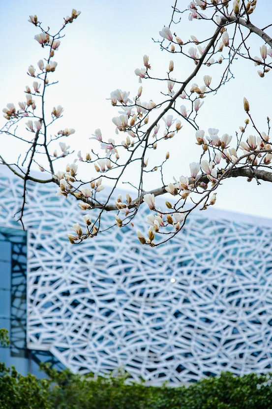 Beside the Suzhou Culture and Arts Centre, the Yulan magnolia blossoms on the branches are pure white like snow, or light pink like morning glow. Set against the beautiful architecture around and the clear blue sky, their petals stretch gracefully, exuding an elegant style. Other places like Baitang Arboretum and Egret Garden also provide amazing scenes of Yulan.
