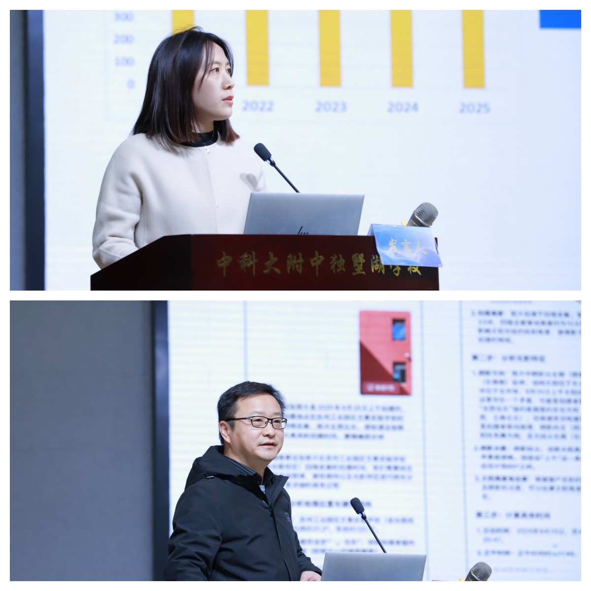 主題發言環節,蘇州工業園區星浦實驗中學書記劉長玉以“人智協同背景下學校育人系統性變革的實踐與思考”為題,分享了學校在人工智能與教育教學深度融合方面的創新舉措與階段成果。中科大附中獨墅湖學校副校長沈奕則以“煥新課堂存溫度,賦能成長鑄力量”為題,從提升學生學習力的視角,介紹了學校在課堂教學改革、特色主題活動、項目化引領及師資培養等方面的探索與實踐。